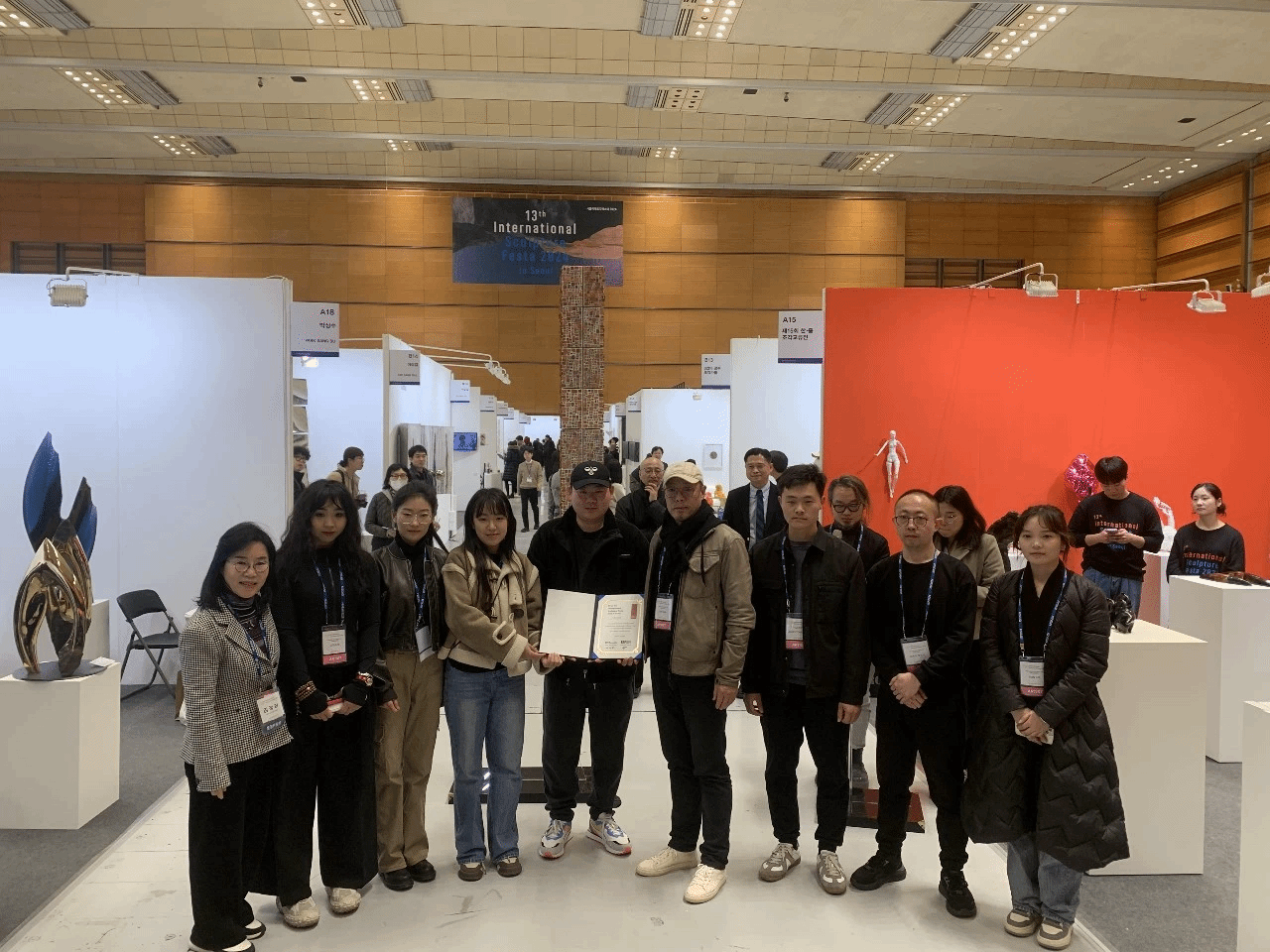韩国雕刻学会会长金姃熹为雕塑系团队颁发特别奖