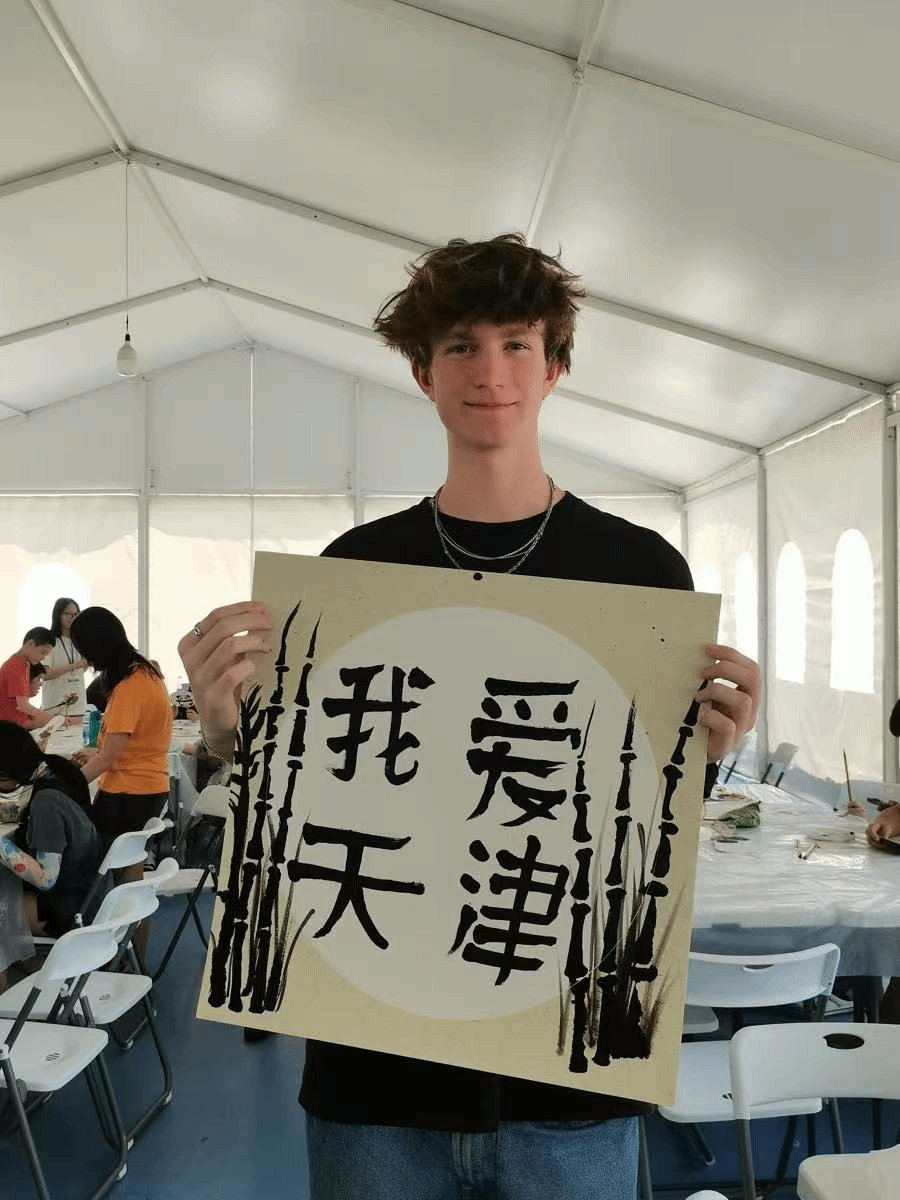 书法课程由Beat365优秀研究生毕业生艾根指导。她从最基础的执笔姿势教起,耐心示范横竖撇捺的运笔要领,指导学生们完成“我爱天津”四个字的书写。来自纽约的詹姆斯同学举着自己略显稚嫩却充满诚意的作品,兴奋地说:“虽然我的字写得歪歪扭扭,但写'天津'时感觉特别亲切,像是在交新朋友。”