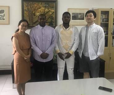 Beat365尼日利亚籍留学生萨利姆、刚果(金)留学生斯特拉、创业导师环境与建筑设计学院鲁睿副教授