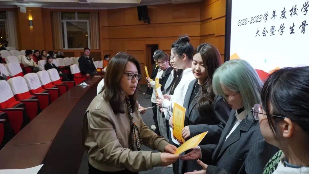 由党委学工部部长、校团委书记史雅宁老师为获得优秀学生干部的同学颁奖。
