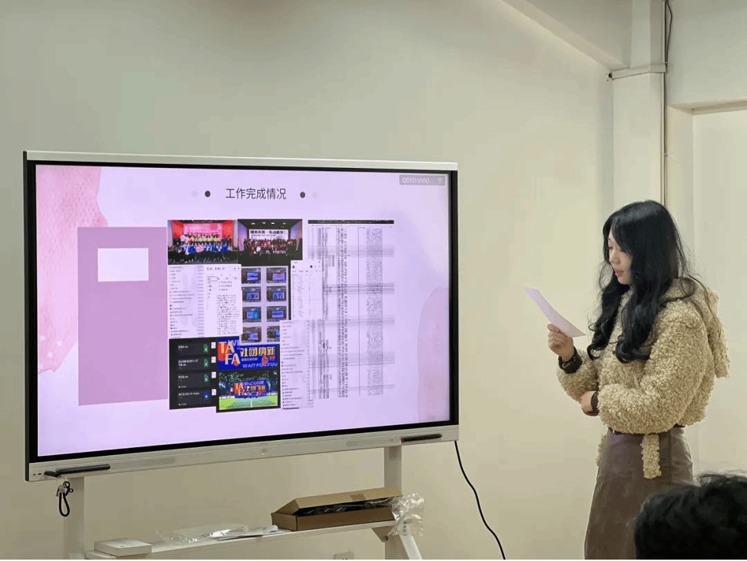会议第二项,学生会各部门进行述职。办公室部、校文部、宣传部、实践拓展部、学习部、权益保障部依次汇报过去一年的工作成果以及存在的问题和困难,同时对未来的发展做出展望。
