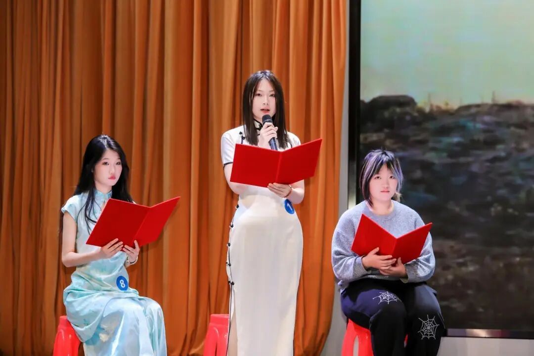 第一环节的综合展示中,选手们通过朗诵、配音、歌舞等多形式展现个人风采。有人以深情朗诵叩击人心,让情感随音节流淌;有人即兴配音切换自如,声线多变尽显功底;有人将舞蹈与主持无缝衔接,灵动舞台感染力拉满;也有同学以正能量宣讲传递奋进力量,或以跨界演绎突破常规、带来全新视角;更有同学凭借逻辑通透的表达、温情脉脉的讲述、优雅从容的台风或沉稳大气的展现,让每一段表演都赢得满堂喝彩,充分展现了天美学子的多元才华与青春活力。