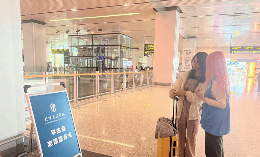 除此之外,校学生会还提供了机场、车站引导服务,志愿者们奔赴三站一场:天津西站、天津站、天津南站和天津机场,迎接我们的天美萌新。志愿者们不辞辛苦,只为将新生们平安护送到学校。