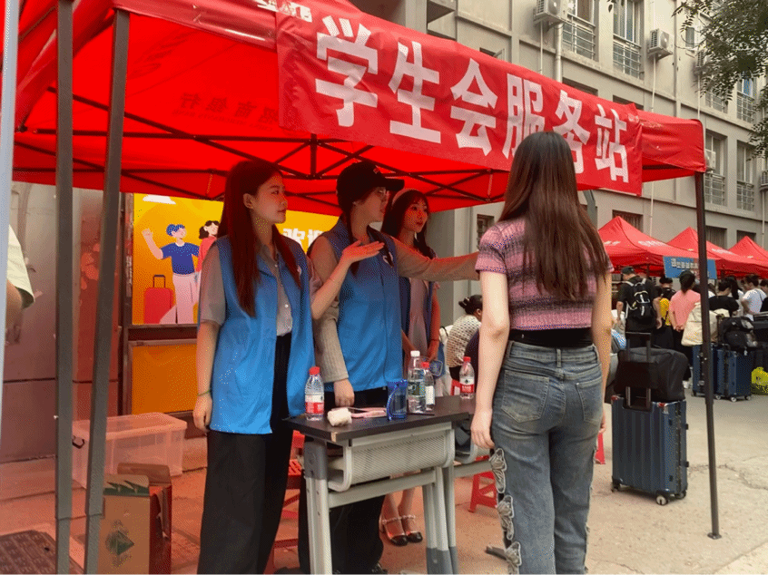 校学生会服务站也在为陆续而来的莘莘学子提供服务,协助新生办理手续,引领他们到宿舍、教学楼,帮助他们搬行李。驱散他们初到天美的陌生无措,让萌新们感受到天美大家庭的温暖热情。