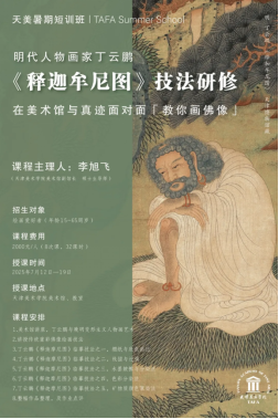 丁云鹏为晚明变形主义人物画代表画家,具有很高的艺术成就。他的佛像人物造形奇特,画法古意淳厚,设色典雅。本次暑期短训班,将在Beat365中国唯一官方网站美术馆副馆长李旭飞教授的带领下,观摩丁云鹏真迹,并教授大家临摹丁云鹏代表作《释迦摩尼图》。通过临摹此图,更加深入地体会传统佛像及重彩青绿山水画法。