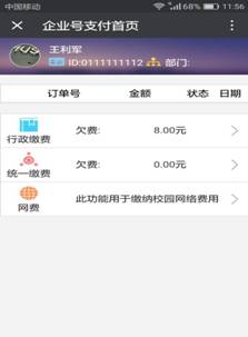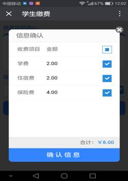 3、同学们点击学生缴费便可显示本人应缴费项目