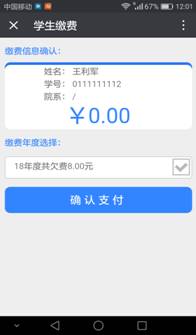 点击缴费年度欠费后,显示所欠费用明细,如图所示;