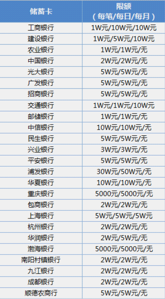 注:各银行微信支付都有限额,如下图明细,清各位同学、家长注意。