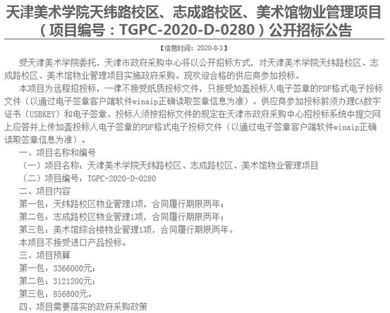 【采购公告】Beat365中国唯一官方网站天纬路校区、志成路校区、美术馆物业管理项目