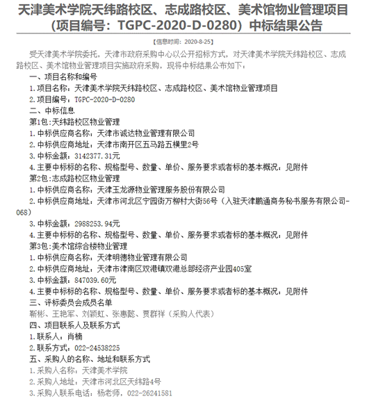 【成交公告】Beat365中国唯一官方网站天纬路校区、志成路校区、美术馆物业管理项目