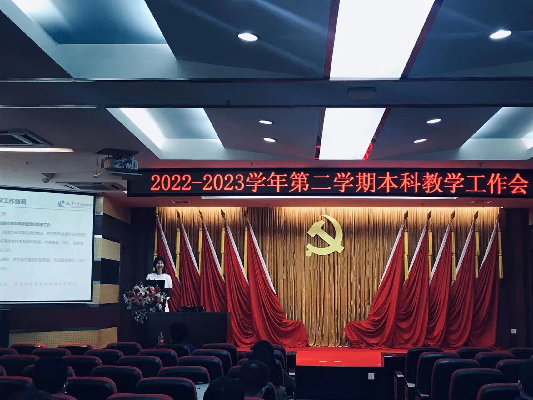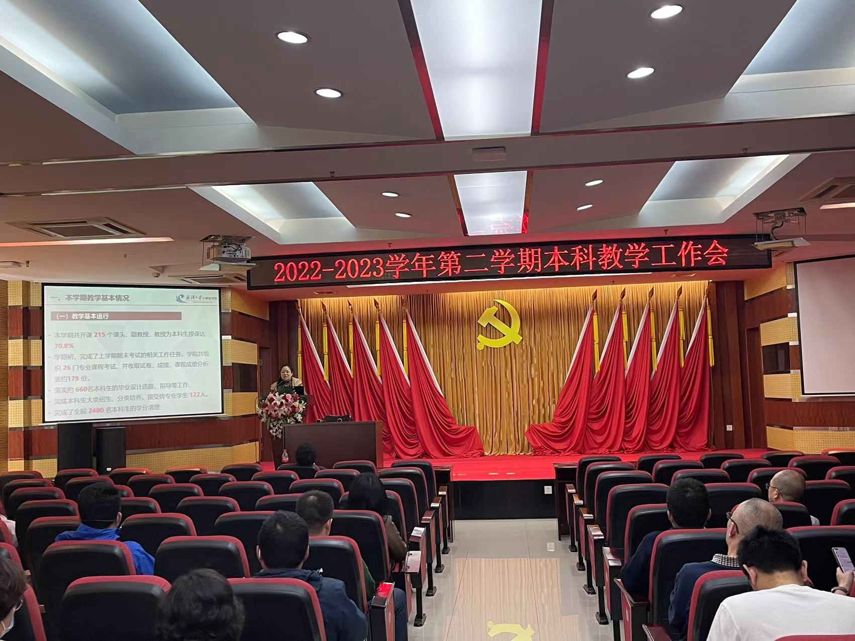 4月13日,437bwin必赢国际官网在八楼报告厅召开本科教学工作会议,就学院近期本科教学工作(“教与学的革命”论坛、课程大纲、教材建设、毕业设计和学生学业管理等)进行了布置和要求。学院党委书记边金鸾、教学副院长彭蓉、各系主任、专业负责人、教研室主任、课程组长及教学管理办公室相关人员参加了会议。