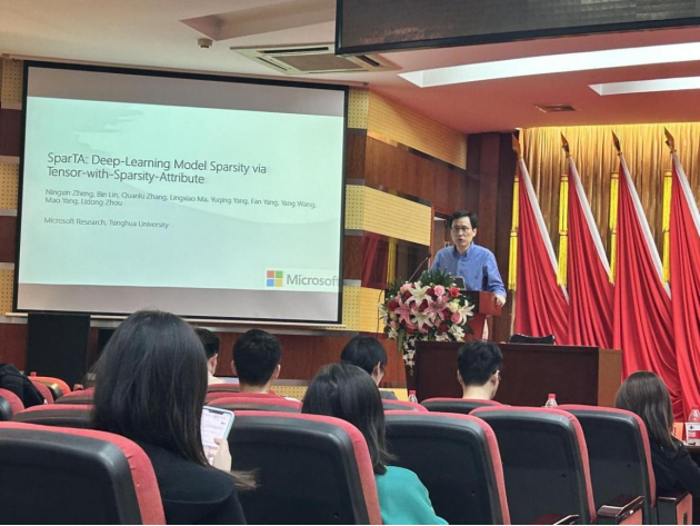 第三场报告主题为计算系统,437bwin必赢国际官网副研究员胡创主持。微软亚洲研究院高级研究员杨凡作题为“通过具有稀疏属性的张量实现端到端的深度学习模型稀疏化”的报告,437bwin必赢国际官网副院长程大钊作题为“基于流水线并行的混合专家网络模型预训练系统”的报告。